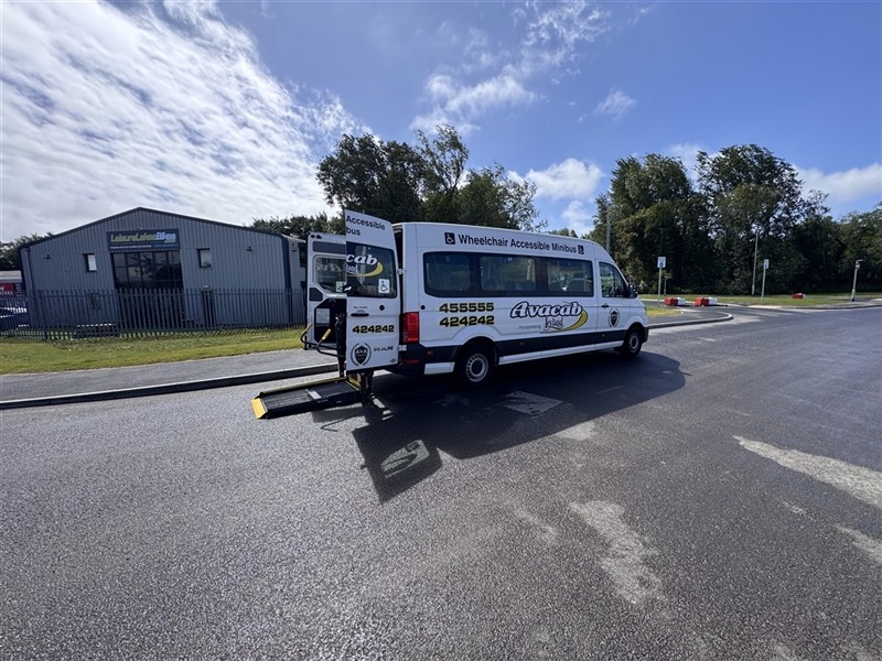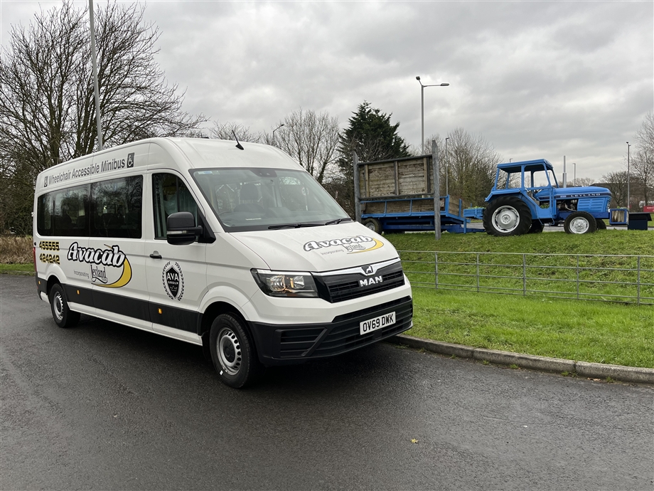 Our Man Wheelchair vehicle in Avacab Livery operated by Ava Coach.com.